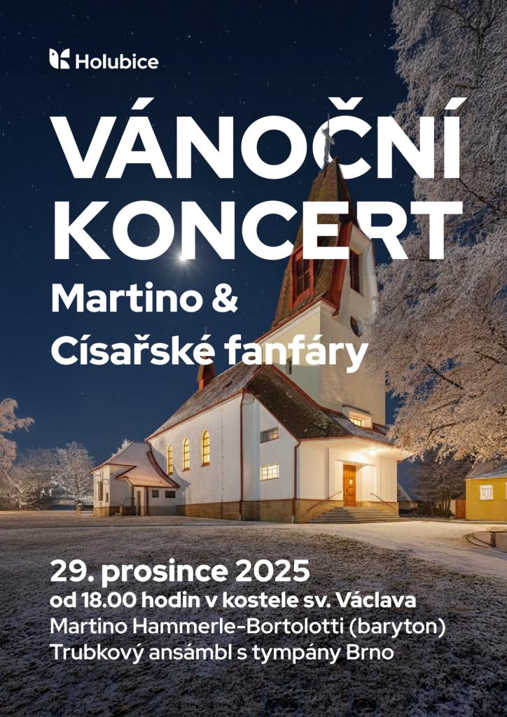 Obec Holubice vás zveme na Vánoční koncert Martino & Císařské fanfáry, který se uskuteční v pondělí 29. prosince v 18 hodin v kostele sv. Václava v Holubicích.