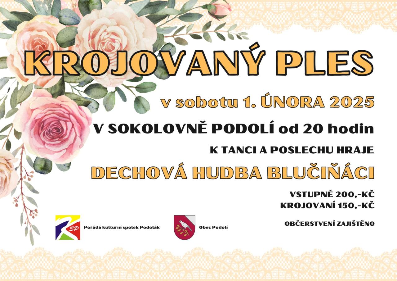 Kulturní spolek Podolák a Obec Podolí vás zvou na Krojovaný ples, který se koná 1. února 2025.