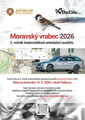 Autoklub ČR zve na 2. ročník Automobilové orientační soutěže Moravský vrabec 2026, která se koná dne 16. května v okolí Vyškova.