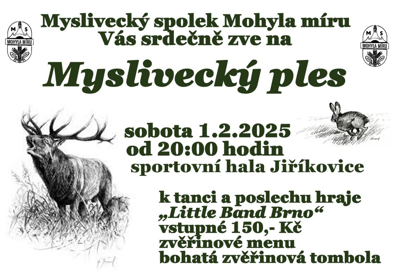 Myslivecký spolek Mohyla míru vás zve na Myslivecký ples.
