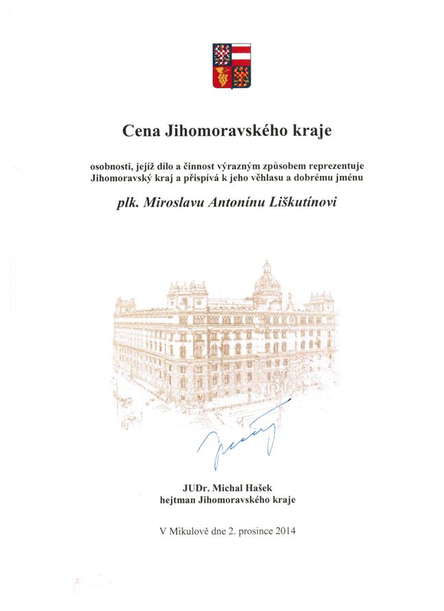 Cena Jihomoravského kraje pro pana M. A. Liškutína
