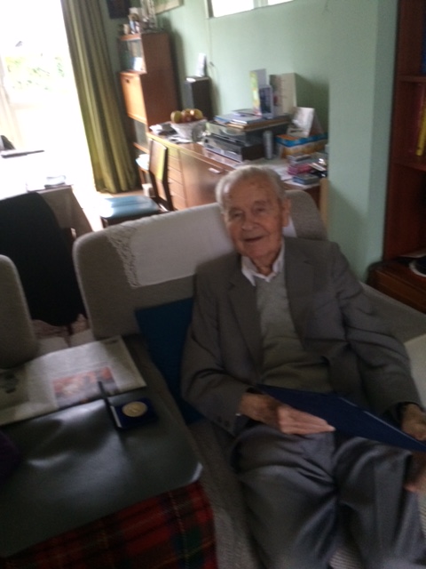 Pan Liškutín si prohlíží ocenění od Jihomoravského kraje