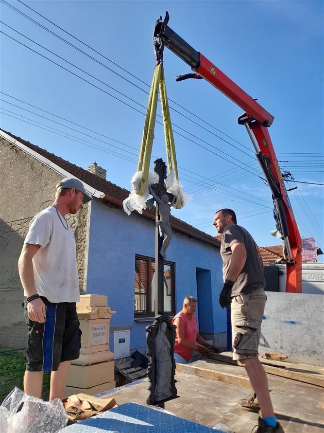 Instalace opraveného křížku foto: R. Staněk